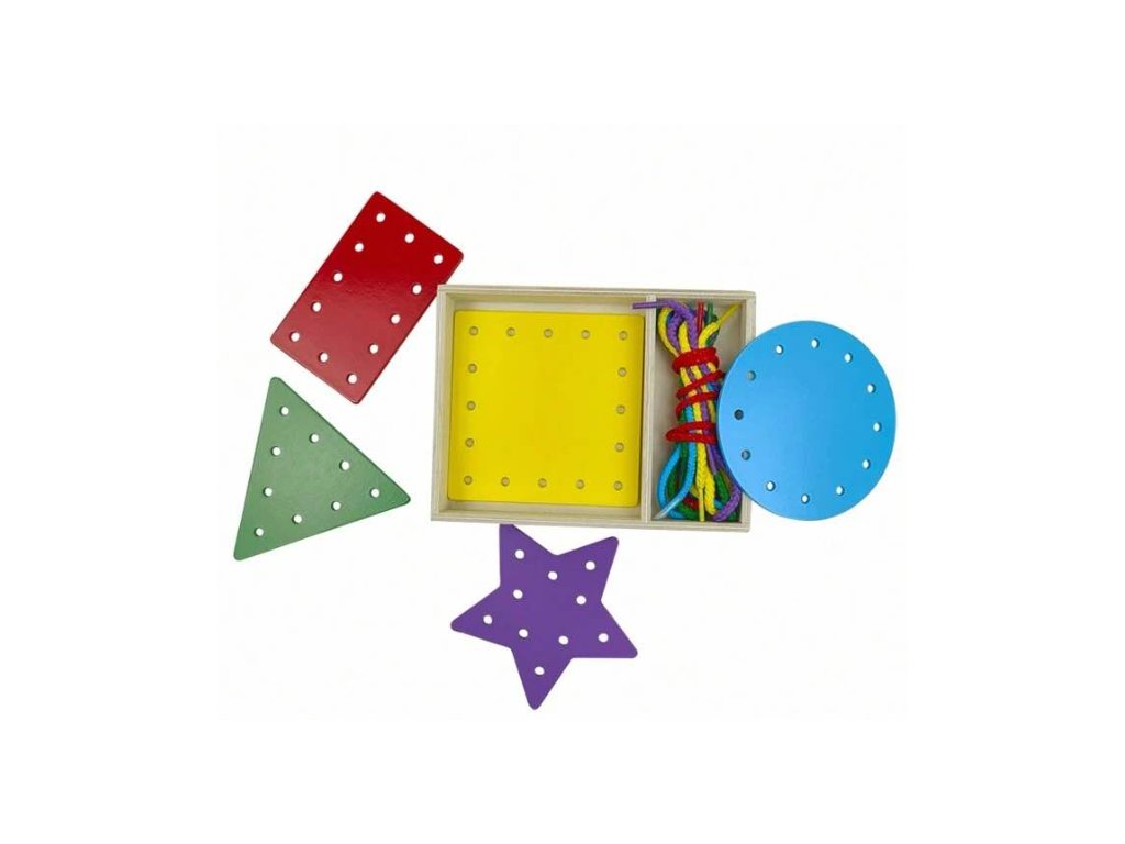 Podporte rozvoj jemnej motoriky a kreativity u svojich detí s touto zábavnou a vzdelávacou sadou 5-dielnych šnurovacích podložiek. Každá podložka má iný geometrický tvar a otvory, cez ktoré môžu deti prevliekať šnúrky. Táto hračka pomáha deťom zlepšovať koordináciu ruka-oko, trpezlivosť a manuálnu zručnosť.