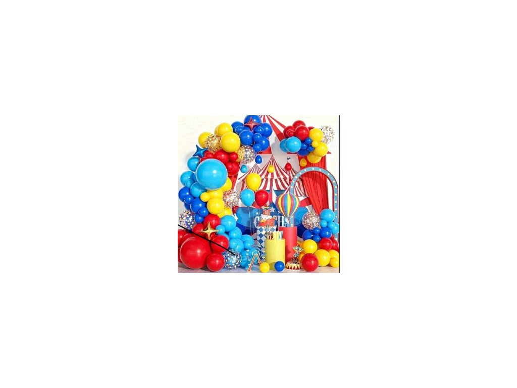 Farebná balónová girlanda, obsahujúca rôzne veľkosti balónov na dosiahnutie dokonalého efektu. Obsahuje pásku a lepiace časti.