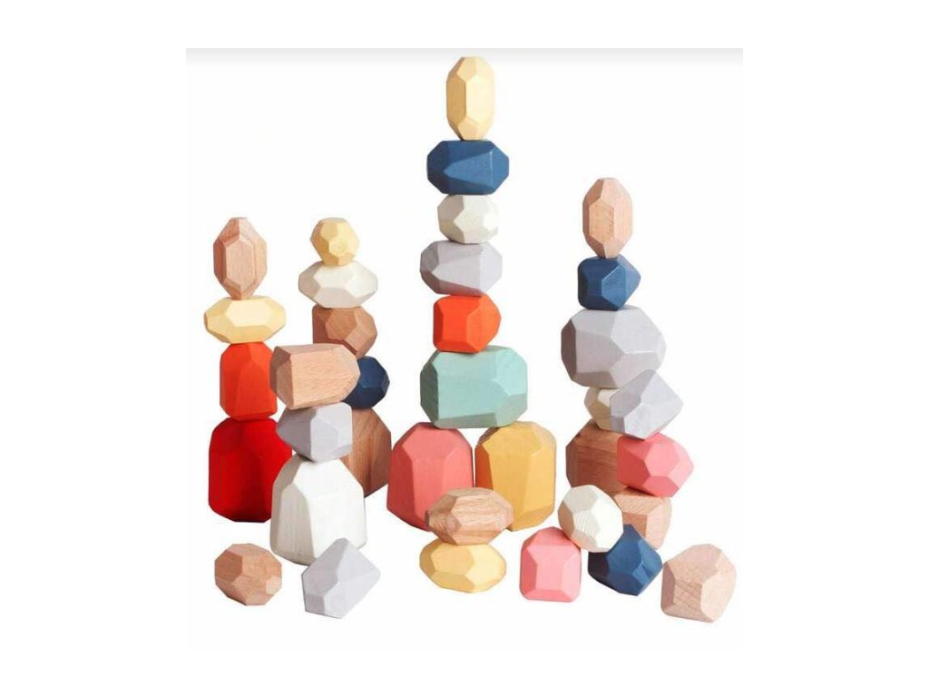 Deti si môžu trénovať jemnú motoriku, zmysel pre rovnováhu a koordináciu očí a rúk pri skladaní jednotlivých kameňov do rôznych tvarov a veží. Rôznorodosť farieb podporuje rozvoj zrakového vnímania a estetického cítenia, zatiaľ čo prirodzený drevený materiál poskytuje príjemný hmatový zážitok. Tento produkt je ideálny na učenie, ktoré podporuje slobodnú hru, kreativitu a rozvoj praktických zručností.