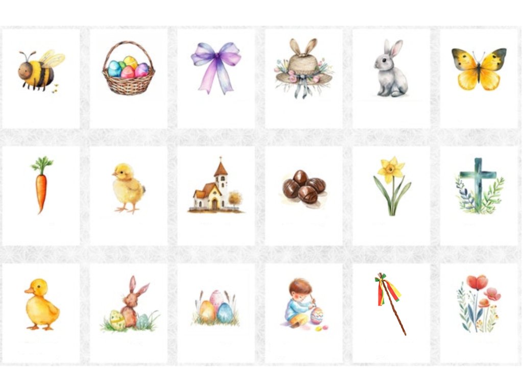 Komunikačné karty s obrázkami Veľkej noci.