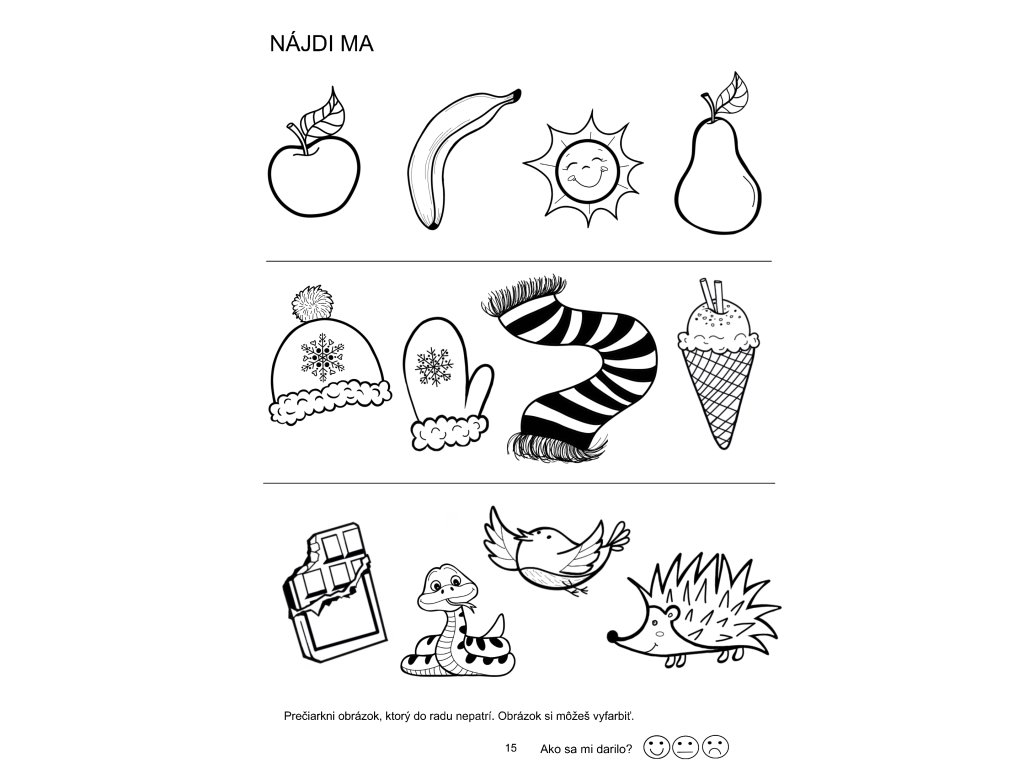 strany pracovného zošita sú spracované tak, aby dokázali upútať detskú pozornosť.
