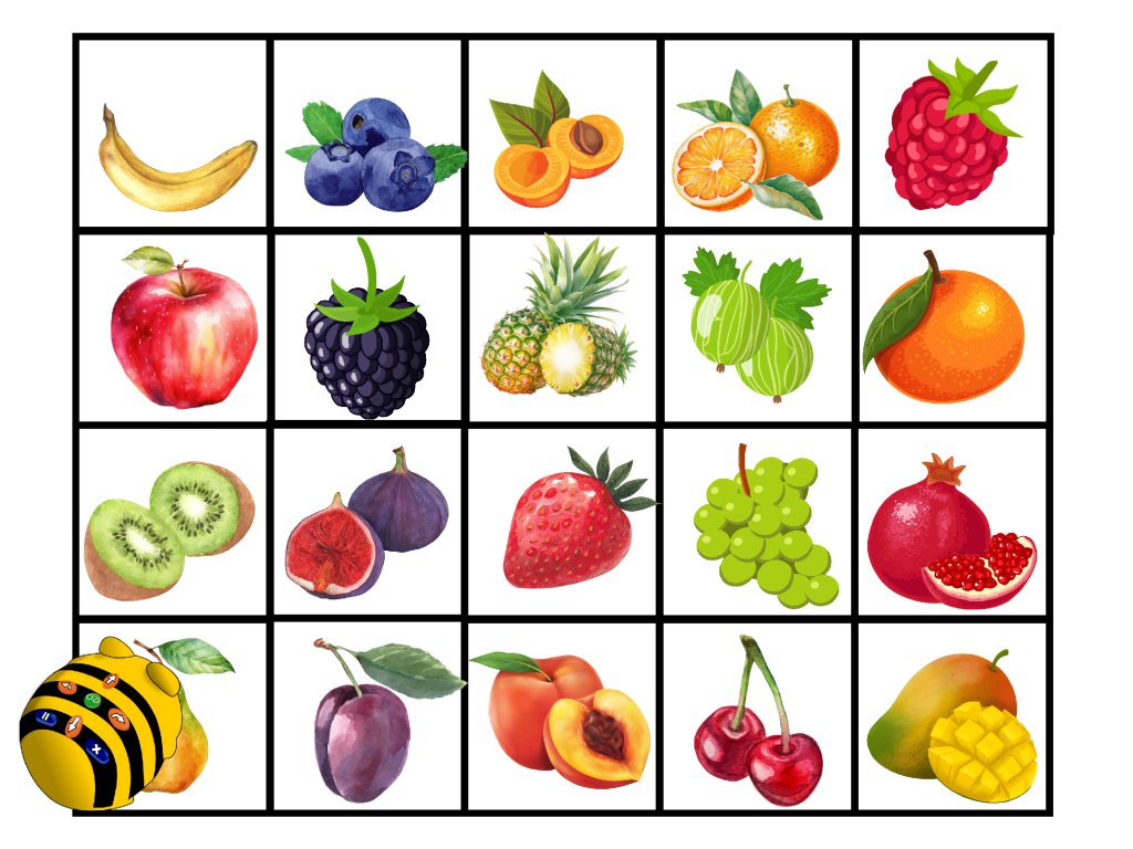 Podložka pod robotickú hračku Bee-Bot - tematika Zelenina. Podložka je potiahnutá transparentnou fóliou, ktorá umožňuje jej opakované použitie a zabraňuje poškodeniu.